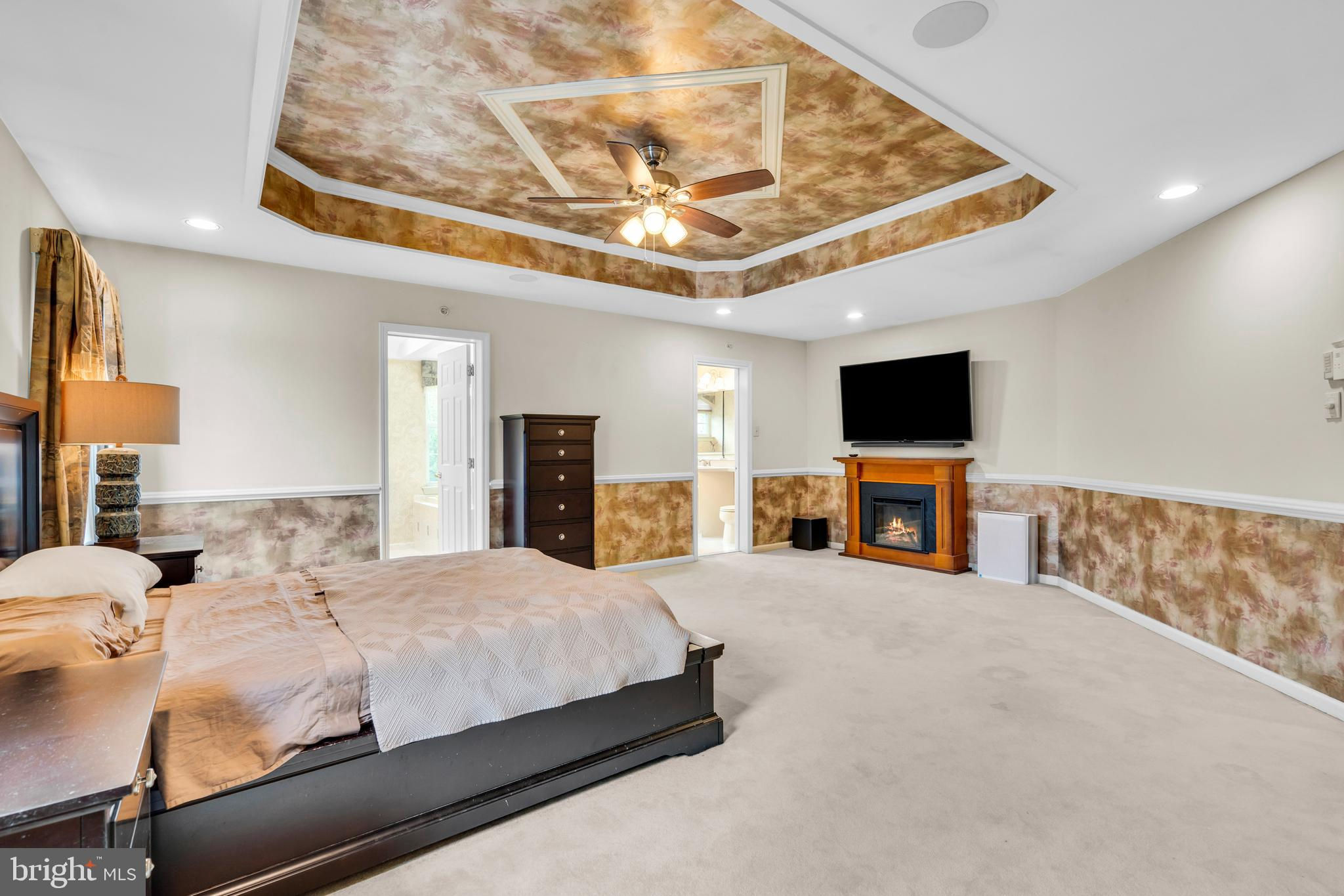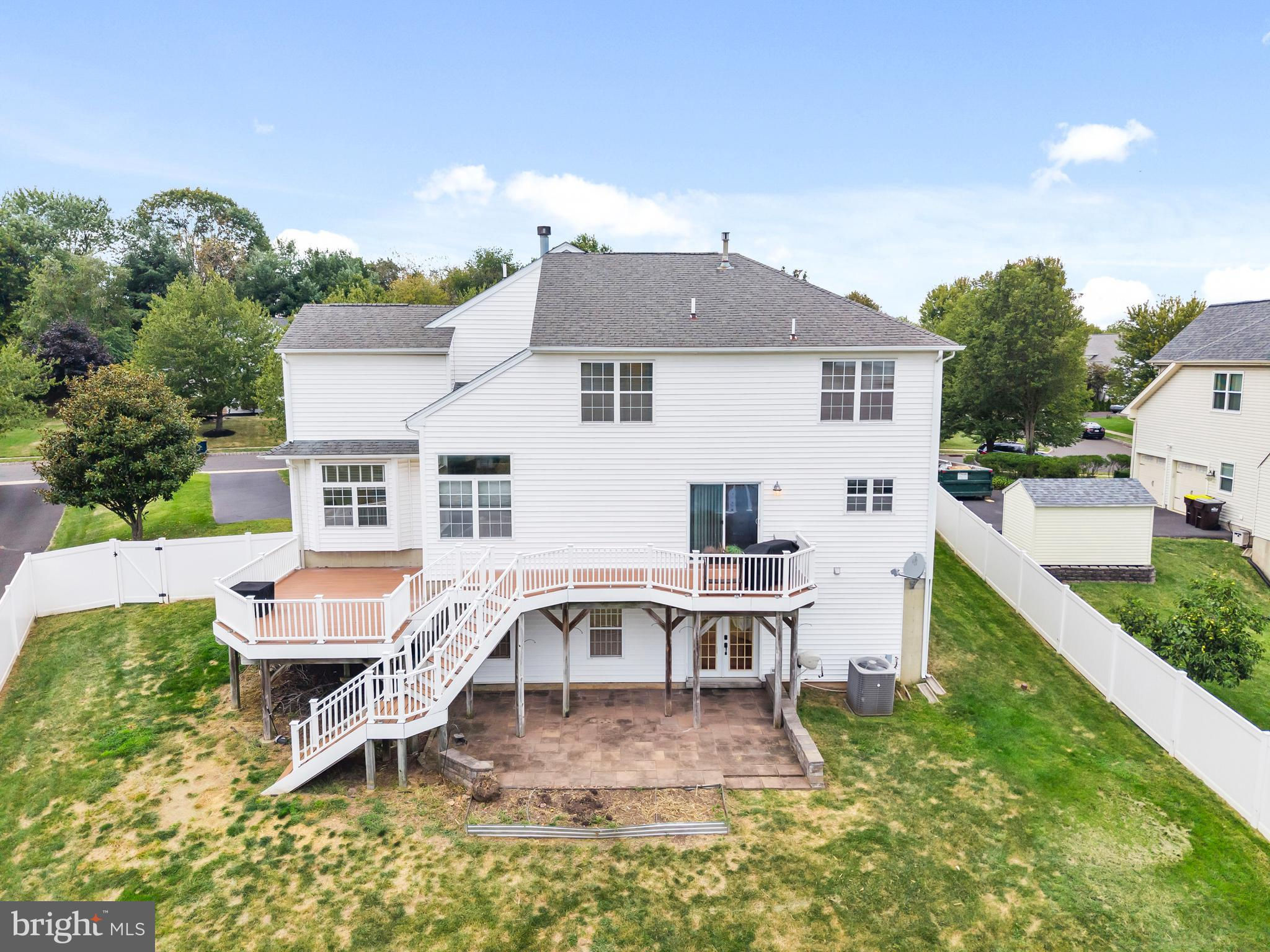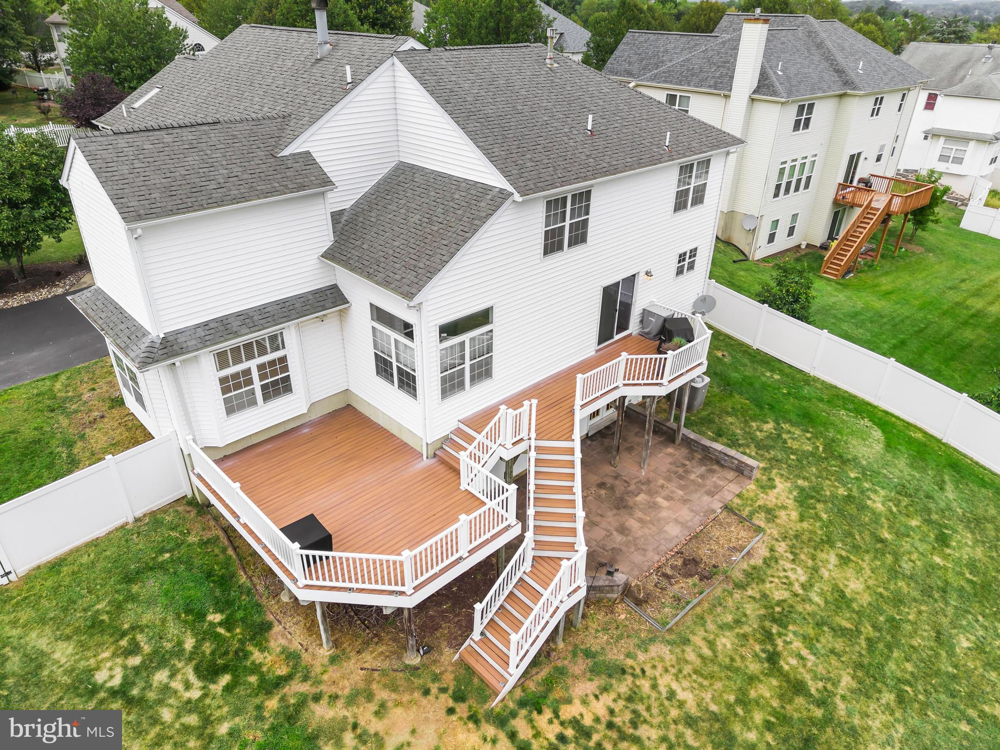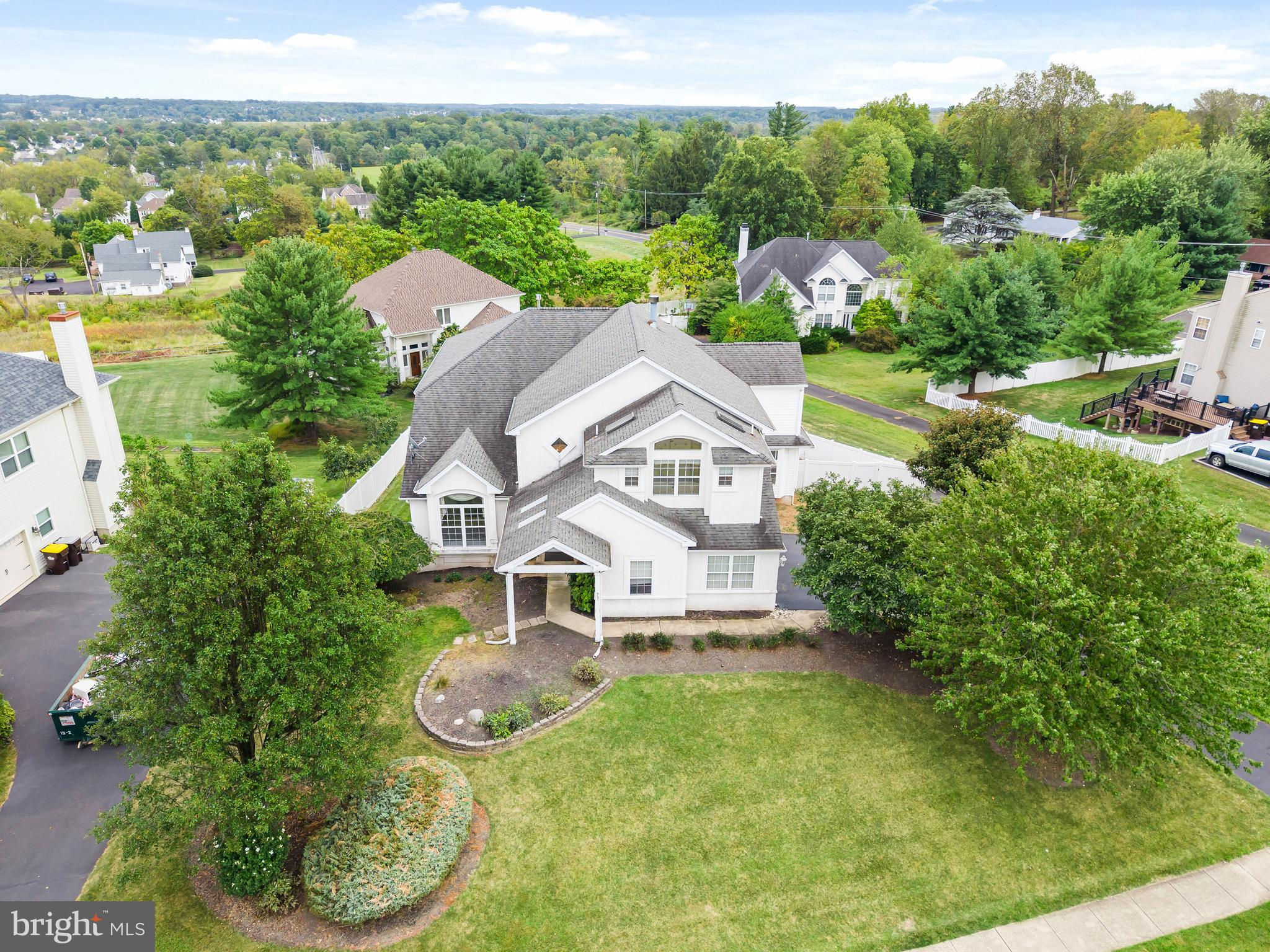 Welcome to this former model home perched atop Hickory Ridge with sweeping Bucks County views. This expansive residence combines contemporary design with an open concept, light-filled layout that’s perfect for both everyday living and entertaining. The main level boasts a dramatic living room with vaulted ceilings, a spacious dining room with a wet bar, and a gourmet kitchen featuring a center island, upgraded countertops, and stainless steel appliances. A cozy family room with a two-sided fireplace, sun-drenched sunroom, powder room, and large laundry room complete the first floor. Upstairs, the primary suite impresses with a tray ceiling, crown molding, electric fireplace and a luxurious walk-in closet with center island and chandelier. Combined with an oversized en-suite bath with dual vanities, soaking tub, oversized shower and dual toilets. Two additional bedrooms share a Jack-and-Jill bathroom along with the fourth bedroom and third full bathroom. The finished walk-out basement offers incredible versatility, whether you need an open recreation space, home office, gym, or ample storage plus the convenience of an additional half bathroom. Step outside to a backyard built for gatherings, featuring an enormous two-tier deck, paver patio, and fully fenced yard. The two car garage, zoned HVAC, whole-house security system and sprinklers make this a can't miss opportunity. Schedule your tour today of your new home!